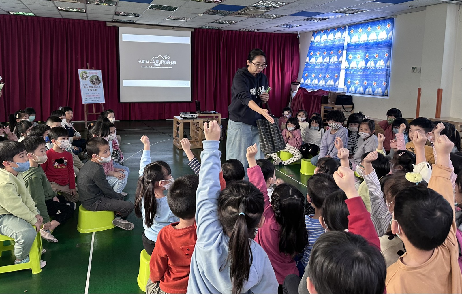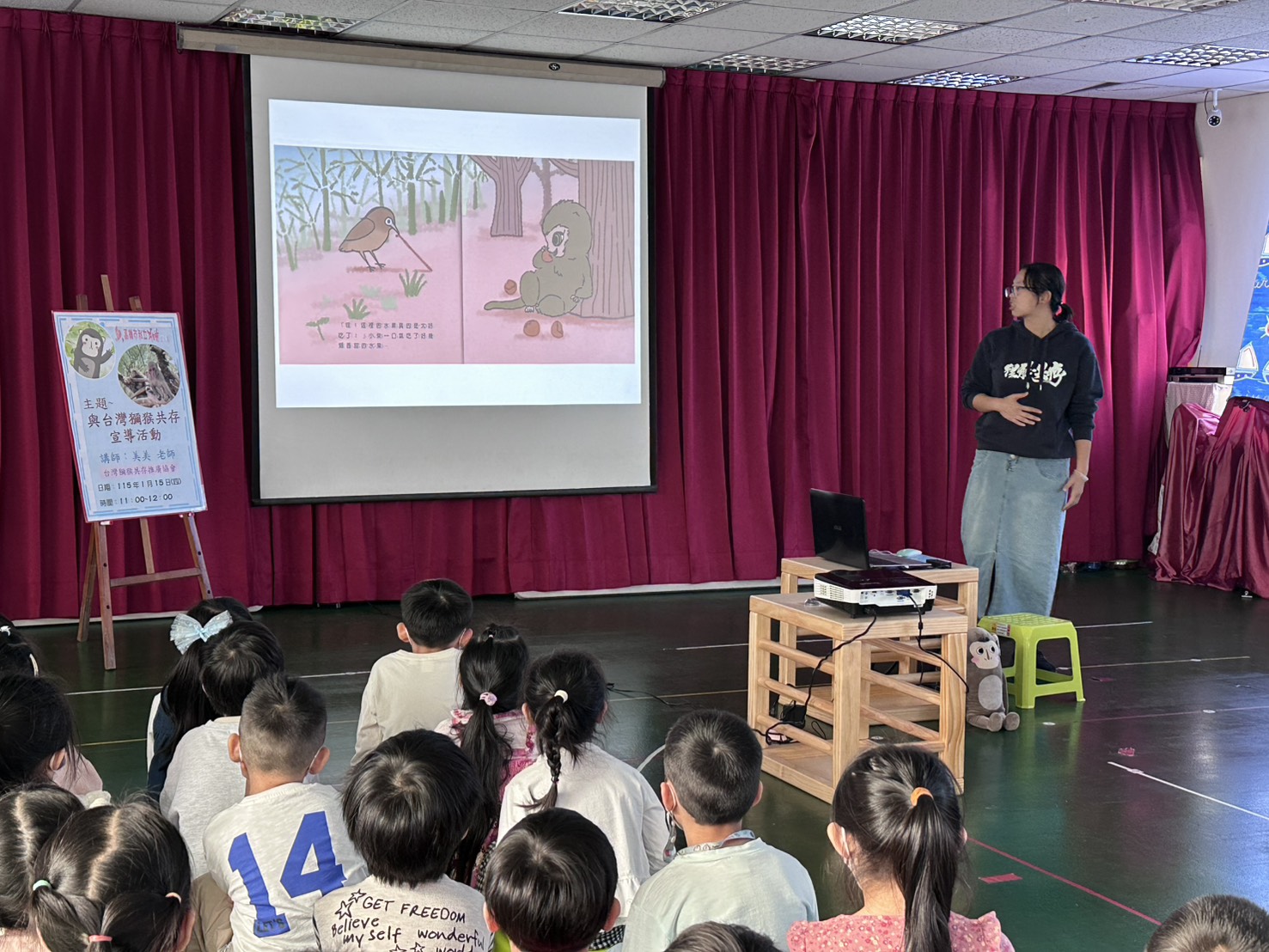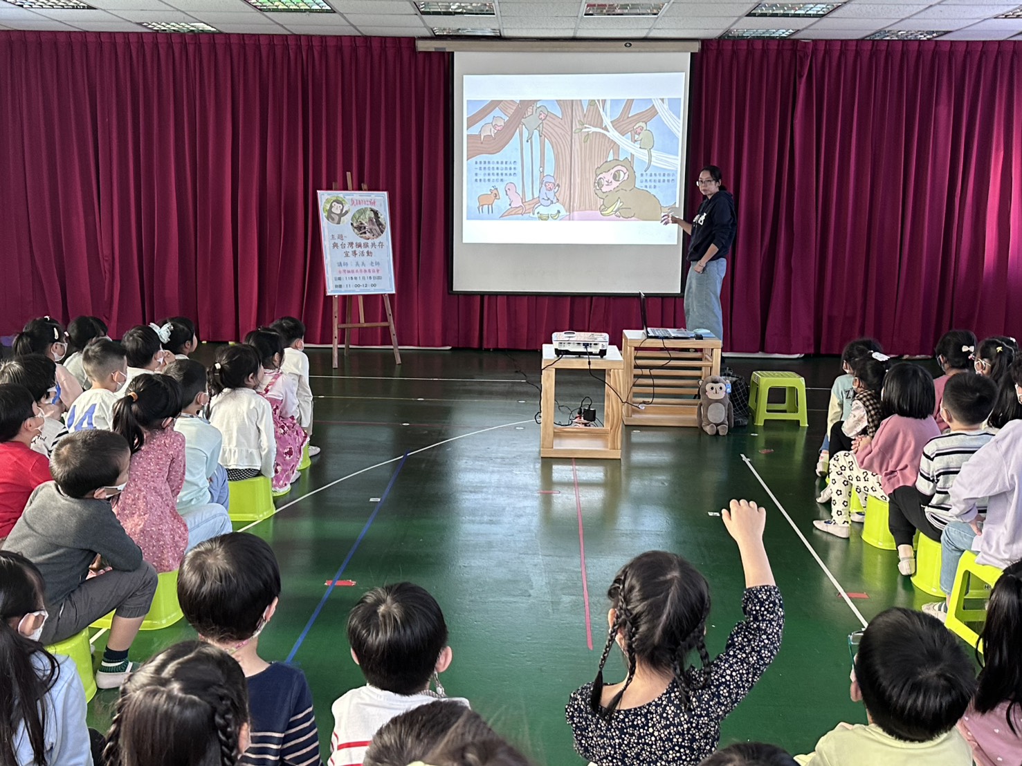 大班在此次主題聯班活動邀請了台灣獮猴共存推廣協會的美美老師蒞園宣導,